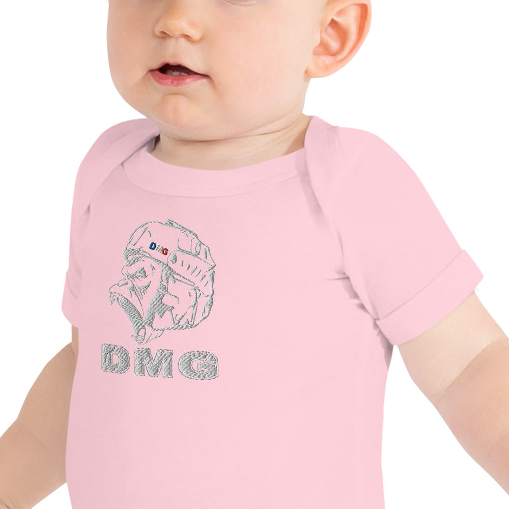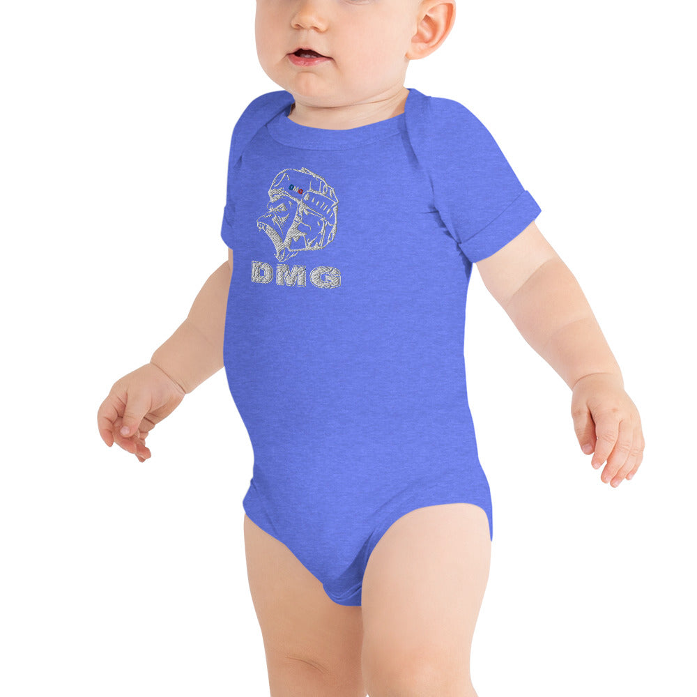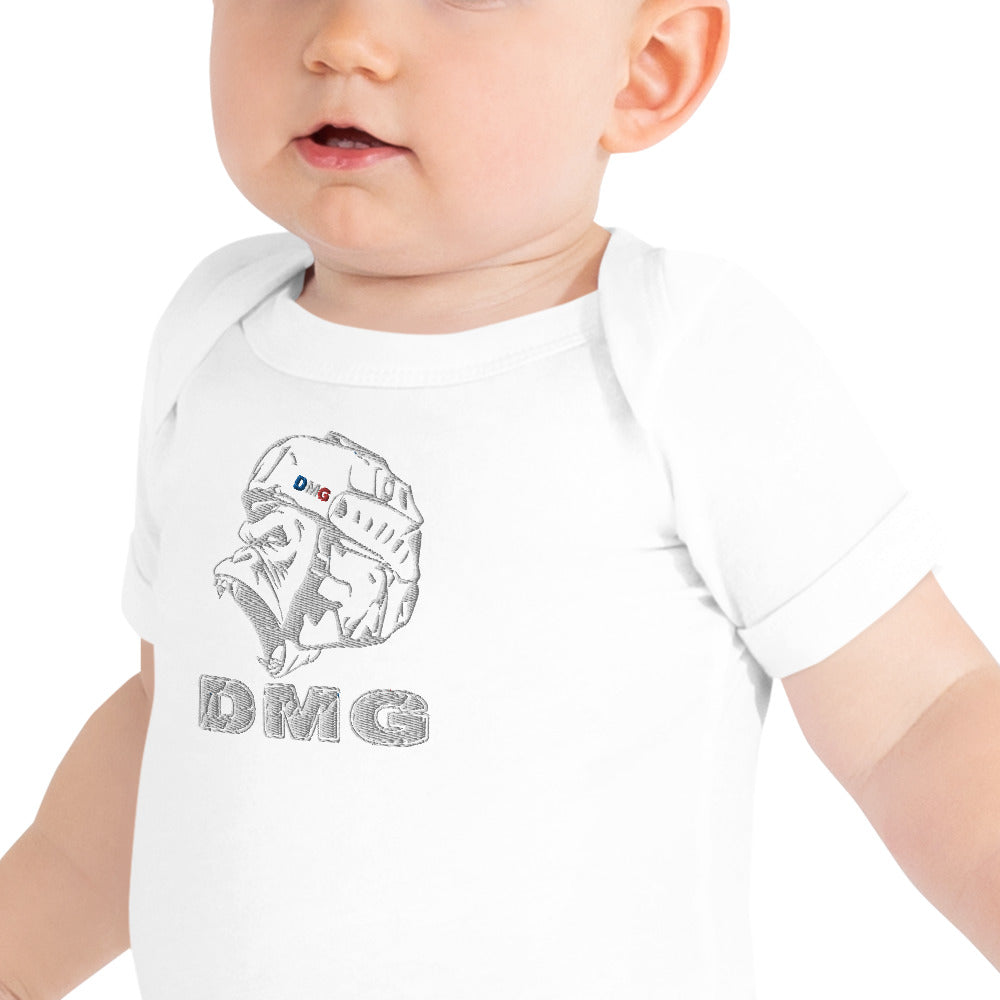 Habillez votre bébé comme un prince ou une princesse DMG avec cette pièce unique 100 % coton. Le T-shirt se ferme par trois boutons-pression pour faciliter le changement des couches, son encolure est confortable et son imprimé est magnifique.